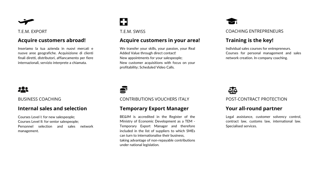 For us at BE&IM, the customer is at the heart of everything we do and their success is our top priority. Our mission is to build lasting and trusting relationships with our clients, offering tailor-made solutions that meet their specific needs and promote their sustainable development.